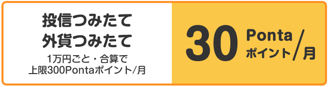 引落口座が「スーパー普通預金」の場合は、投信積立金額1万円ごとに30 Pontaポイント(上限300 Pontaポイント/月)が付与されるため、今回のキャンペーン参加で90ポイントが貰えます。