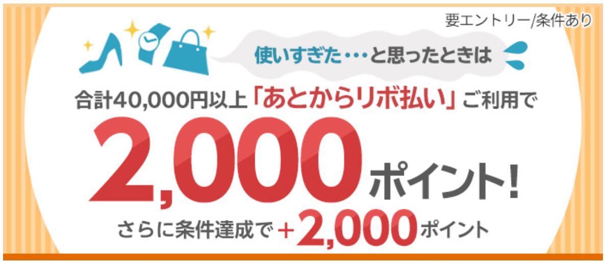 ・特典:合計40,000円以上あとからリボ払いに変更で、楽天ポイント2,000pt(期間限定)